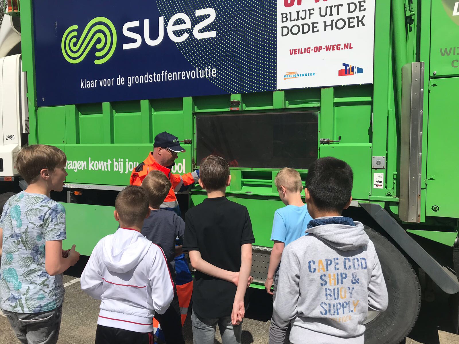 Vandaag heeft de bovenbouw een les over de dode hoek gehad. Het eerste gedeelte bestond uit theorie. Door middel van uitleg, filmpjes en een quiz kwamen de kinderen achter de belangrijkste regels. Het tweede gedeelte was praktisch. Buiten hebben de kinderen zelf ervaren wat je wel en niet ziet bij verschillende situaties rondom een vrachtwagen.